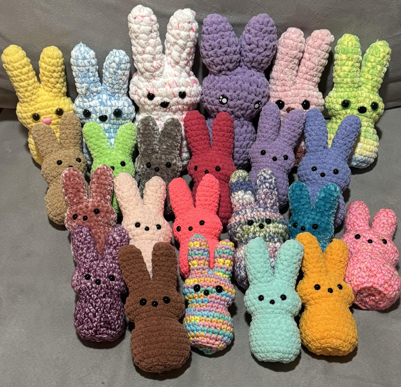 This Easter Bunny Peep crochet-along guides students step by step through creating a small, Easter-themed bunny peep. The instructor will demonstrate each stitch and provide clear guidance throughout the project, making it approachable for beginners and those still building confidence with crochet.