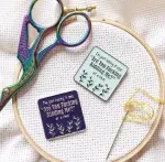 Designed to keep your needle secure while you work, this magnetic needle minder helps prevent lost needles, unnecessary holes in your fabric, and rust stains from needles left in your project. It’s both practical and unapologetically honest.